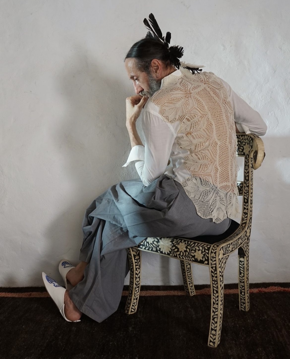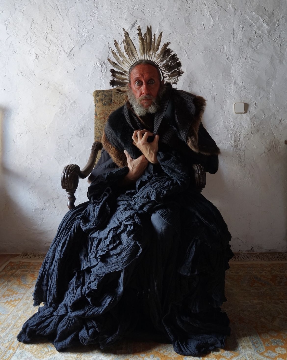 MA: Yes, I have about 20 of them and over seven years I have made about 300 pictures with them. I was going through a lot of stuff, I stopped drinking and taking drugs. I realised it was not working for me here in the village, it was okay in New York, it was okay in the middle of the stress of everything, but here it wasn’t great. My two friends were Patrón and Jose Cuervo and they were bad bitches to hang out with. So, I thought, forget it. All that energy I got through alcohol I expressed it through the mannequins. I created these big installations making my own universe, using the things around here, my grandma’s tablecloth, feathers from animals being killed for food, my communion clothes. I am 57 years old, and I have always collected stuff, so I have a lot to work with. The mannequins express a number of emotions that I think we (humans) have lost.